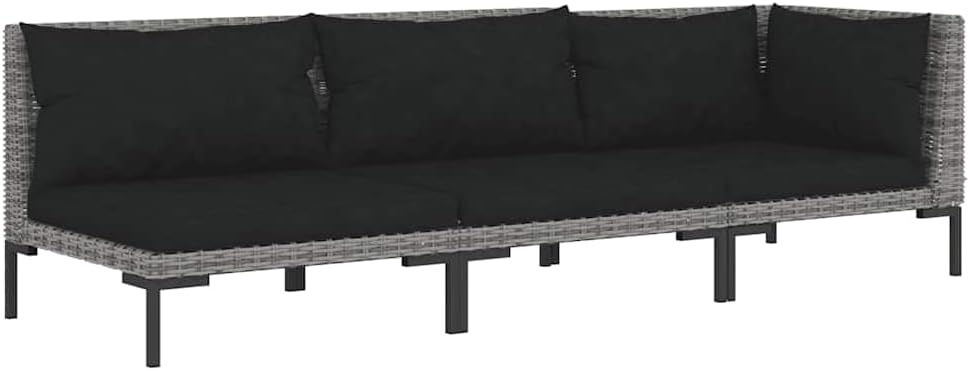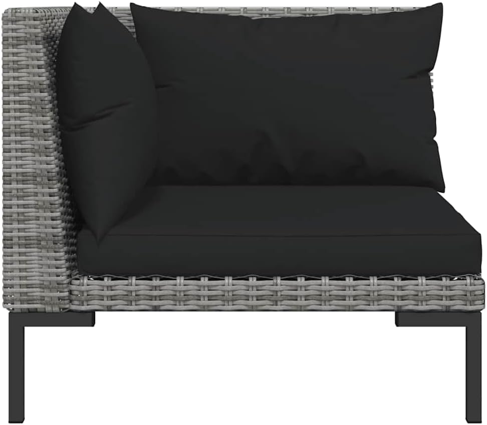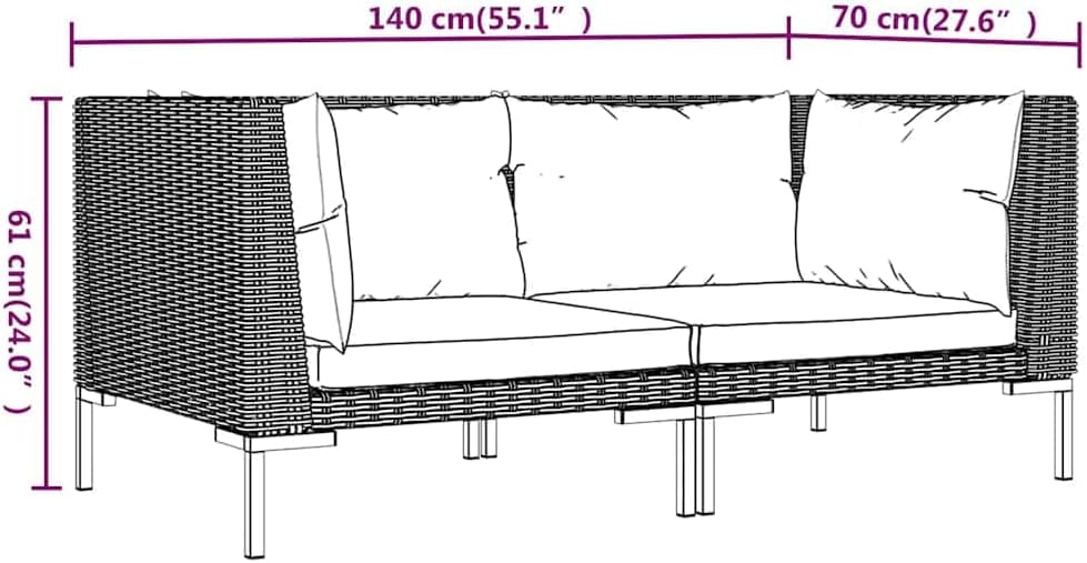 Enjoy your relaxing time with this trendy garden sofa! Combined with other seating, it meets a variety of your different needs.Premium material: Half round poly rattan is an exceptional resistance material and durable with different weather conditions. It needs little maintenance.Comfortable seating: The thickly padded and removable cushions are highly comfortable that add an extra comfortable seating experience.Stable frame: The powder-coated steel frame goes towards sturdiness and stability.Suitable for outdoor use: Made of water-proof material, this seat can withstand humidity and rainy weather. It can also be easily cleaned with a damp cloth when needed. –::In order to extend the life of your outdoor furniture, we recommend you to protect it with a waterproof cover.Rattan color: Dark grayCushion color: BlackMaterial: Powder-coated steel, half-round PE rattan, fabric (100% polyester)Filling material: FoamDimensions: 27.6" x 27.6" x 24" (W x D x H)Seat size: 23.6" x 23.6" (W x D)Seat height from the ground: 8.3"Seat cushion size: 22.8" x 22.8" (W x D)Back cushion size: 19.7"/23.2" x 14.6" (W x H)Assembly required: YesDelivery contains:2 x Sofa2 x Seat cushion4 x Back cushionCalifornia Proposition 65